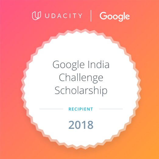 Received Google’s scholarship on Android Nanodegree given to 10000 students in India