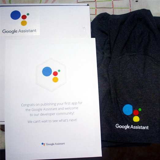 Earned Google Assistant T-shirt for developing the first app for the Google Assistant and joining the Google Assistant developer community